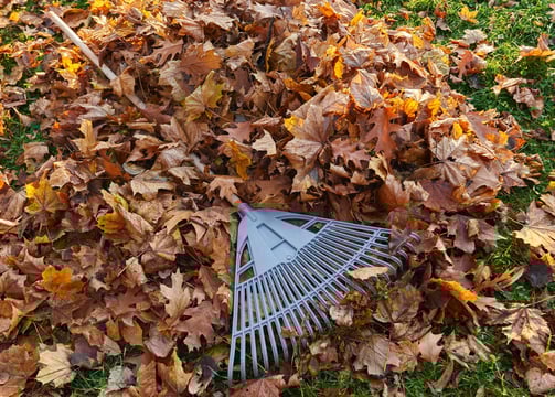 Sorgfältiges Rasenmähen und das Entfernen von Laub.